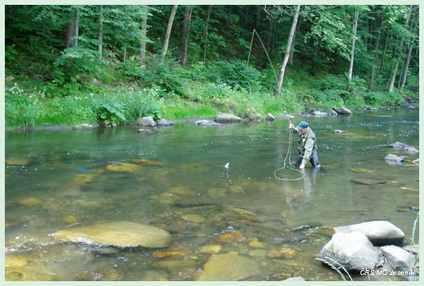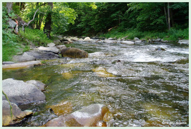 Přítok Kladské Nisy, Odry. Od státní hranice s Polskem až po splav u bývalého závodu Moravolen – tkalcovna v Jeseníku včetně přítoků mimo Staříč. Na revíru je vyhlášeno pásmo se zákazem lovu ryb: od betonového mostu u křižovatky se zrcadlem v České Vsi až po splav pod bývalými jatkami v České Vsi, úsek vyznačen tabulemi. Od silničního mostu v Širokém Brodě až po horní hranici revíru v Jeseníku je lov přívlačí zakázán. Všechny přítoky jsou CHRO – lov ryb zakázán.