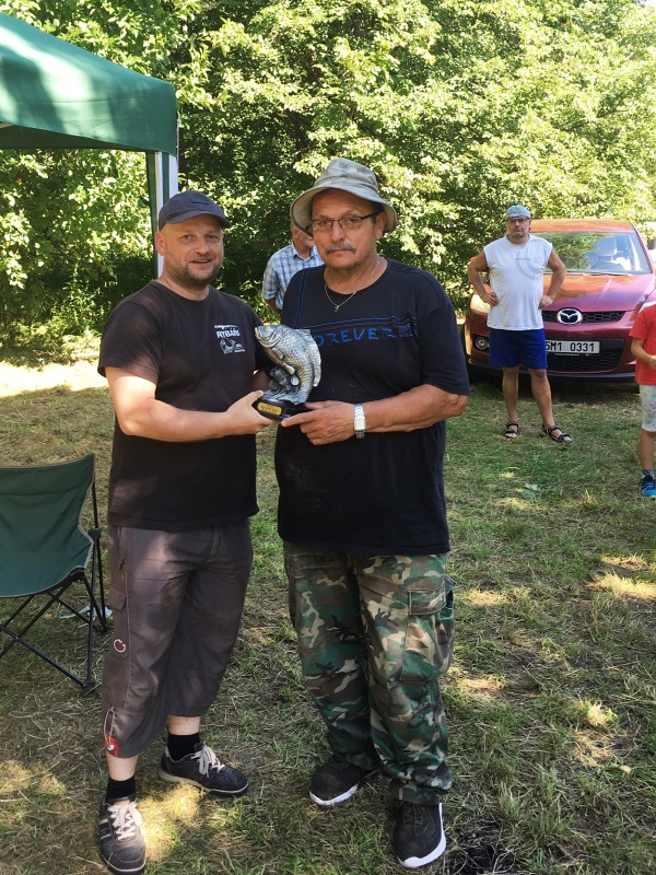 Závod dvojic byl zajímavý až do úplného konce, kdy o vítězi rozhodl kapr ulovený 20 minut před koncem závodu a také to, že v pořadí druhá dvojice nevyužila příležitosti toho, že jim zabral kapr 3 minuty před koncem – žel, kvůli tomu, že ho nedokázali zdolat, tak skončili druzí. Podívejme se tedy na stupně vítězů v řeči čísel: 3. místo obsadili Poustečtí David a Karel s úlovkem 793 centimetrů ryb, na druhém místě se umístili pánové Brezniak Vojtěch a Vrtný Zdeněk s úlovkem 901 centimetrů a první místo obsadil Břetislav Řeha, kterého partner onemocněl, takže p. Řeha musel absolvovat závod sám. Ulovil celkem 929 centimetrů ryb a tudíž o 28centimetrů zvítězil – gratulujeme vítězům.